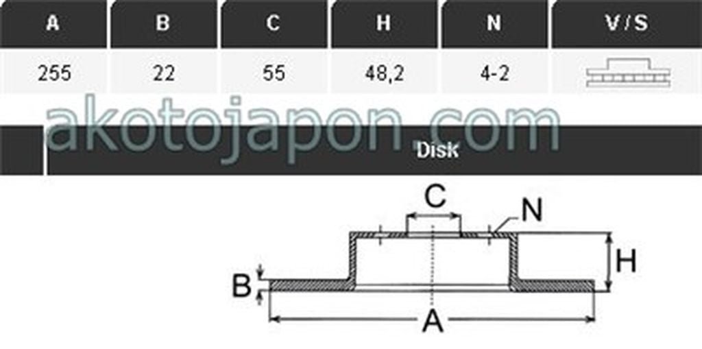 FREN DİSKİ ÖN COROLLA 1,6İ AE101 255*22*55*48 HAVALI